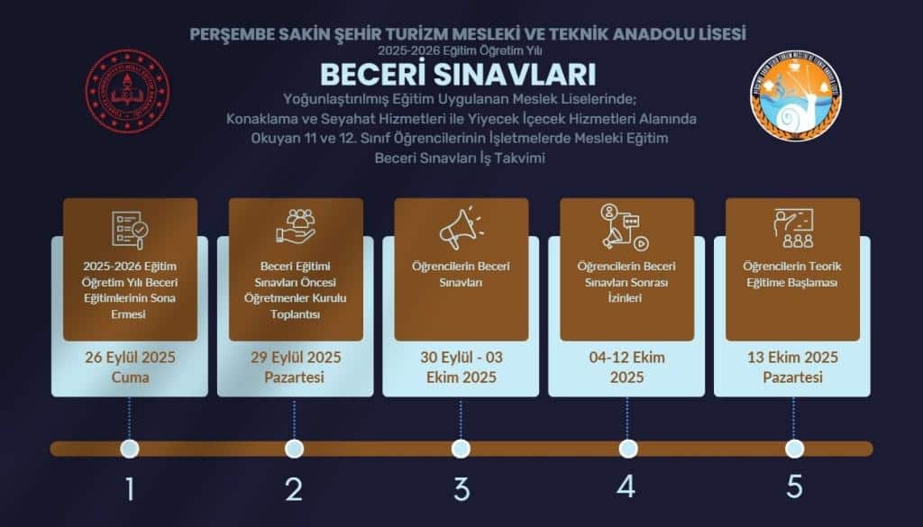 2025-2026 Beceri Eğitimi Sınavlarımız 30/09/2025-03/10/2025 tarihleri arasında yapılacaktır. Sınava girecek öğrencilerimize başarılar dileriz.