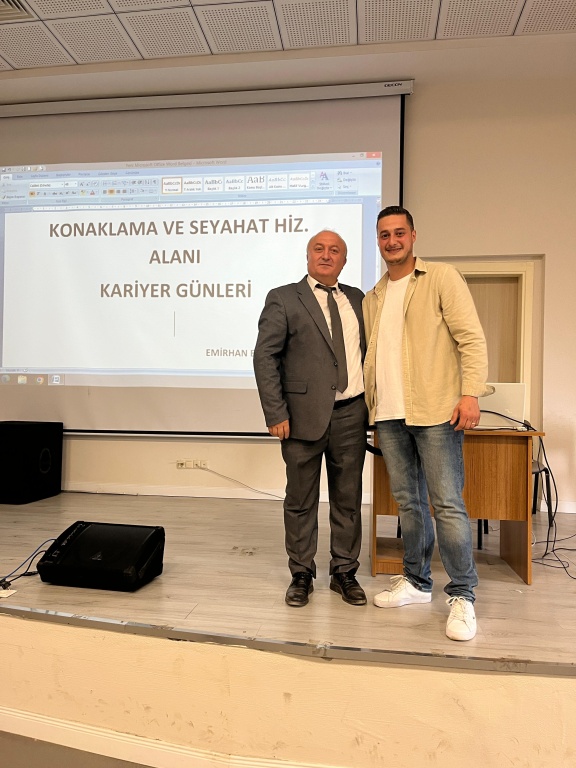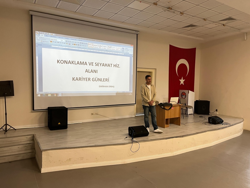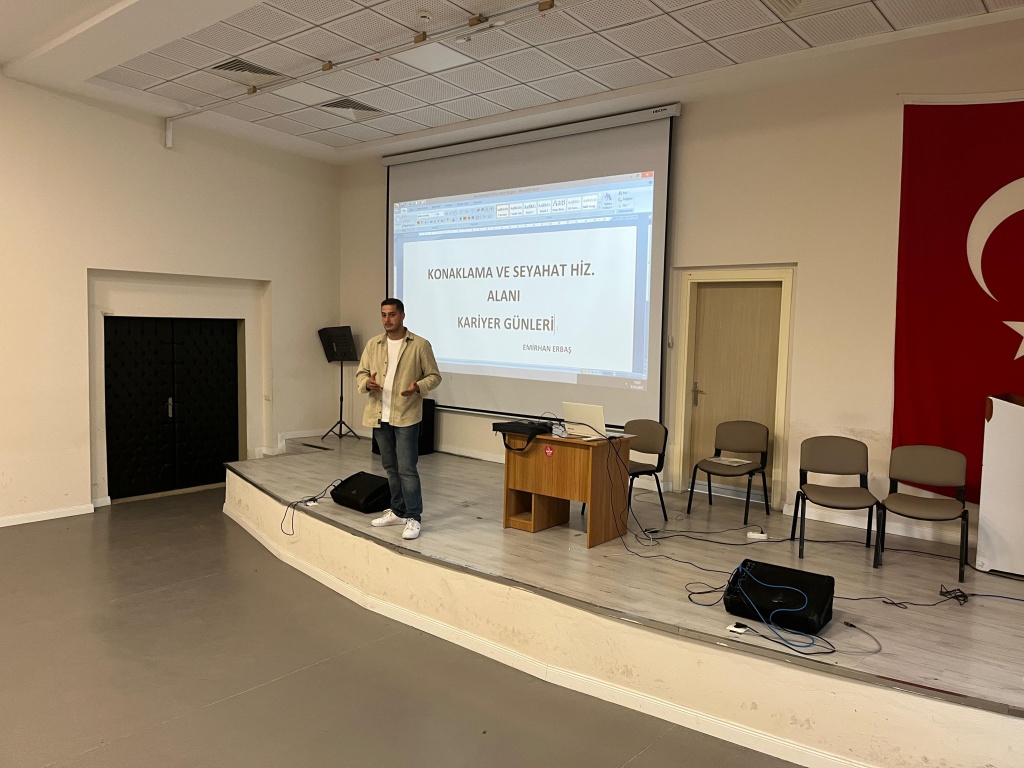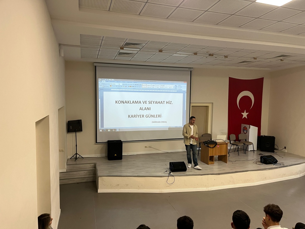 2017-2018 EĞİTİM ÖĞRETİM YILINDA KONAKLAMA VE SEYAHAT HİZMETLERİ BÖLÜMÜNDEN MEZUN OLAN EMİRHAN ARBAŞ OKULUMUZUN KARİYER GÜNLERİ ETKİNLİĞİNE KONUK OLDU.