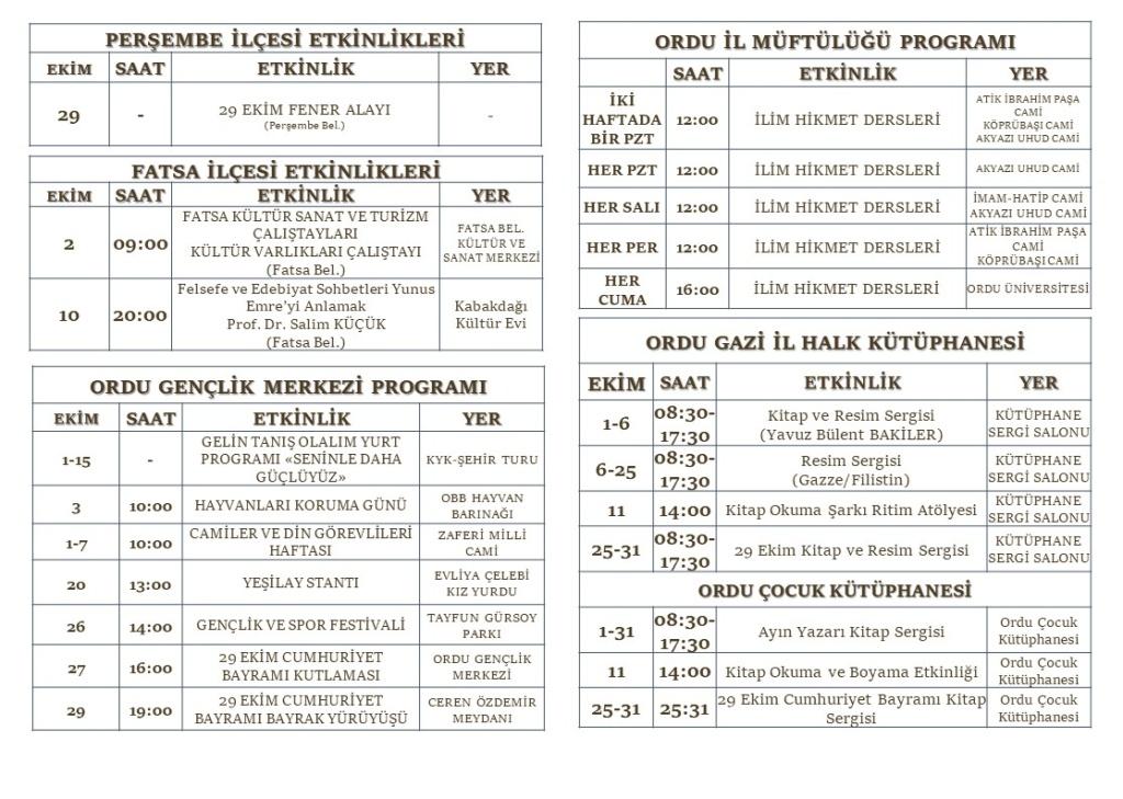 ORDU EKİM 2025 KÜLTÜREL ETKİNLİK TAKVİMİ